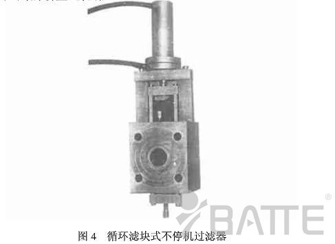新型熔體換網(wǎng)過濾器在國(guó)內(nèi)的開發(fā)應(yīng)用較晚,上世紀(jì)八十年代年國(guó)內(nèi)一些企業(yè)才研制出帶料壓傳感報(bào)警系統(tǒng)和高壓污料泄荷系統(tǒng)的循環(huán)濾塊式不停機(jī)換網(wǎng)過濾器(圖4),該機(jī)可在佳時(shí)機(jī)報(bào)警更換濾網(wǎng),使換網(wǎng)時(shí)機(jī)選擇可準(zhǔn)確量化,防止錯(cuò)換和漏換而且還能使主體總壓力比同類產(chǎn)品降低30%-50%,在美、德、日、奧、韓等國(guó)進(jìn)口的BOPP,CPE,EPE,塑料拉絲,彩印復(fù)膜生產(chǎn)線上配套使用證明安裝簡(jiǎn)便,易操作,性能穩(wěn)定可靠。